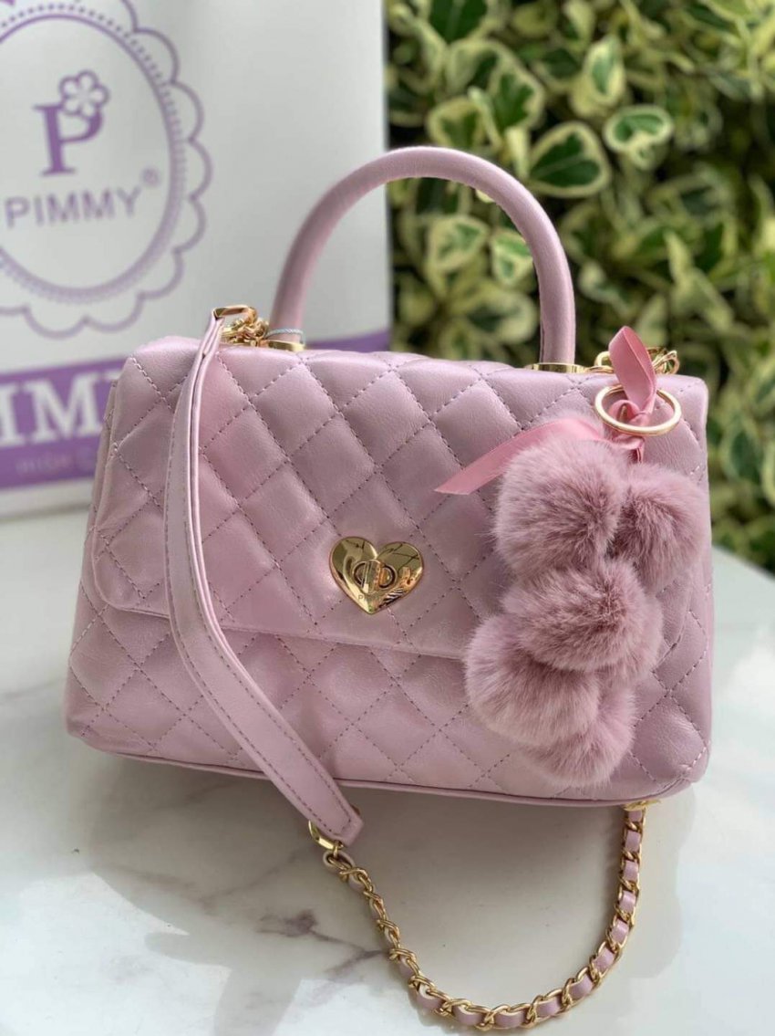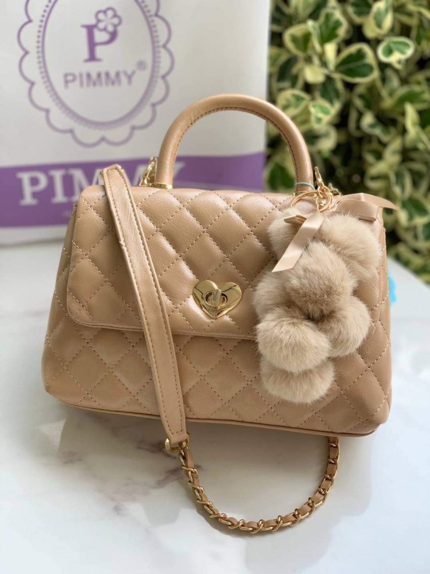 งานแท้ 100% ชนช็อป งานสวยมาก ทรงโคโค่ งานหนังสีเมทัลลิคสวยมาก ถือได้สะพายข้างได้ ตรงกลางแต่งอะไหล่ปิด-เปิดหัวใจ ปั๊ม pimmy ????แถมฟรีริบบิ้นแบรนด์ ด้านในปั๊มซับในแดงแบ่งเป็น 2 ใช้งาน มีช่องซิบเล็ก 1 ช่อง พร้อมสายสะพายโซ่สลับหนังยาว มีหนังรองบ่า