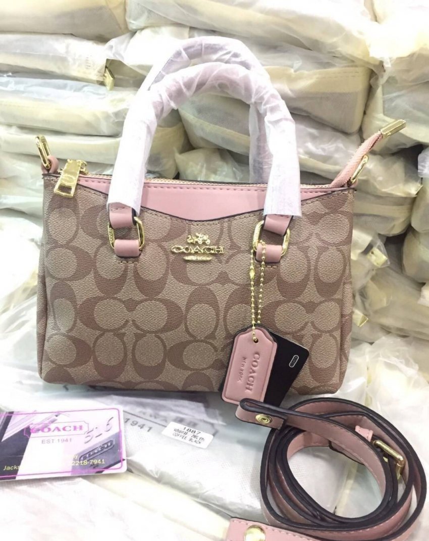 กระเป๋าถือ สะพายข้าง งานวัสดุเกรดมิลเลอร์ทั้งใบ งานปั้ม เป๊ะทุกจุด ติดโลโก้ Coach ถุงผ้าปั้มเเบร์น coach ซับในบุผ้าพิมพ์ลายโค้ช มีสายยาวปรับได้ ขนาดกำลังน่ารัก รุ่นนี้ขายไวมากจ้า