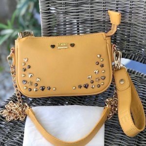 กระเป๋าแบรนด์ PIMMY งานแบบใหม่ล่าสุด งานน่ารักมาก ด้านหน้าดีเทลแต่งอะไหล่หมุดมุมกระเป๋าสวยมาก ตรงกลางติดโลโก้ Pimmy สีทอง งานซิบปั๊ม ด้านหลังมีช่องซิบ 1 ช่อง ด้านในปั๊ม พร้อมสายสะพาย 2 เส้น ถอดใช้งานได้ สายเส้นสั้นติดหมุด สวยหรู มีถุงผ้ากันฝุ่นพร้อม คล้องมือได้สะพายได้ เก๋สุด ควรมีจ้า