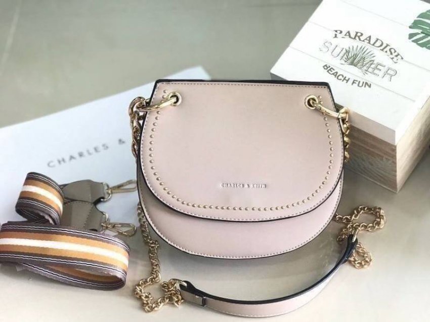 วัสดุหนัง PU หนังนิ่มละมุนมาก ตกแต่งอะไรสีทองเงาสวยมีหมุดเล็กๆรอบฝากระเป๋าหน้าเพิ่มความเก๋ลงตัวมาก